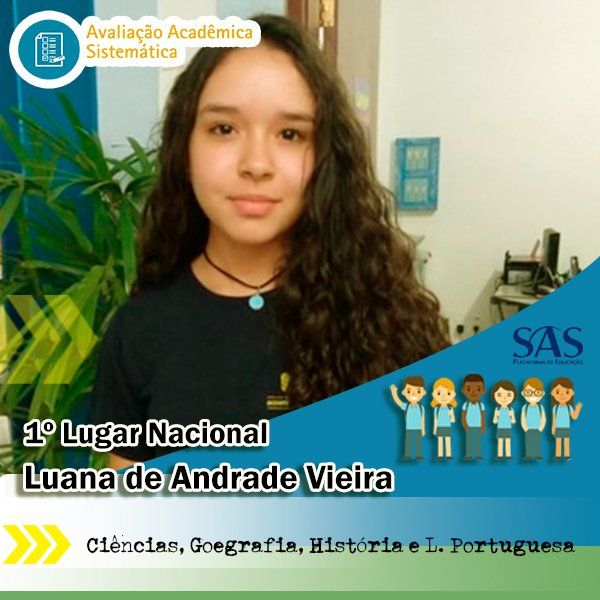 Alunos que se destacaram na Prova Diagnóstica SAS - Ficando em 1º Lugar Nacional